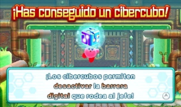 - Los cibercubos cumplen la misma función que las Piedras Solares de Kirby: Triple Deluxe, ya que ambos sirven para desbloquear las fases de los jefes y las fases EX. Ademas al igual que las piedras solares si reúnes todos los cibercubos obtendrás una pegatina especial (en el caso de Triple Deluxe un Llavero especial).