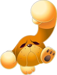 Tiene apariencia de una cabeza de perro de raza Bulldog, con dos patas y dos orejas, que puede usar como manos.