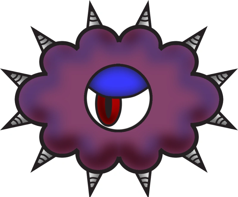 Su apariencia se ha vuelto más amenazante, su ojo pasa a ser rojo, las nubes que lo cubren pasan a ser moradas y sus pinchos son de un color grisáceo.