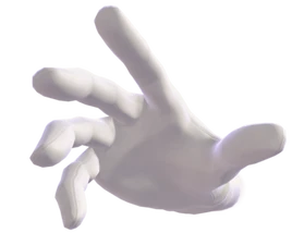 - Pistola: Master Hand se pondrá juntará los dedos índice y corazón, tomando forma de pistola, para después lanzar uno o dos proyectiles, que se pueden absorber dando el poder impacto de misil