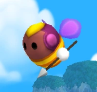 Es una abeja con cuerpo amarillo y rayas marrón claro como cualquier abeja, también tiene una cabeza marrón y alas y una especie de audífono púrpura. Sus manos son blancas y lleva una lanza que le puede lanzar a Kirby.