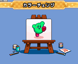- Verde: Kirby de color verde y zapatos naranja. Kirby del jugador cuatro por defecto. Encontrado en la Ruta Arco Iris.