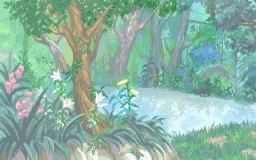 - Un bosque oscuro con una mansión y un esqueleto al fondo (igual que la parte anterior), ésta parte te conecta a la Mansión Luz de Luna como antes. Pero necesitas una habilidad para cortar una cuerda. En ésta misma zona puedes encontrar el Spray de Pintura gris, en las afueras de la mansión. Es la única parte a la que se puede acceder a las demás zonas si no contamos con el Círculo Central.