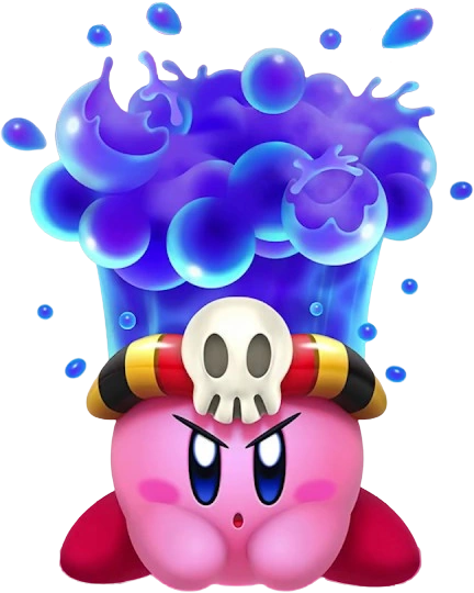 | Pócima viscosa | Kirby lanza una bola viscosa de veneno por medio de su boca. Puede dejar un charco venenoso en el suelo. Reúsa la misma animación de "Proyectil ola", el movimiento normal de Agua. | ||