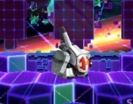 Este puede atacar con una barra brillante que te electrifica, al sacarla la gira y se va al otro lado rápidamente. También saca minas de un tamaño pequeño tira 3 y en su versión 2.0. son 4. Cuando lleva la mitad de la vida saca pequeños ovnis que dispara "bolas" de energía hacía abajo, en su forma 2.0. disparan rayos y se mueven de un lado a otro. Su último ataque es autodestruirse que quita casi la mitad de vida.