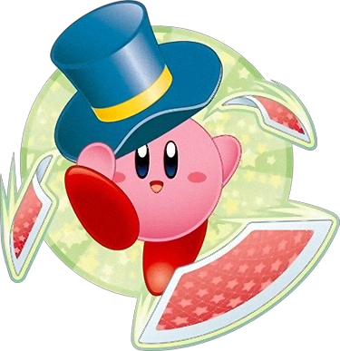Kirby indossa un gigantesco cappello nero che dipendentemente dal gioco può avere una striscia gialla.Inoltre ha spesso delle carte solo di color rosso che può usare come mossa è una strana testa color bianco con occhi e bocca neri che sbuca fuori dal suo capello sempre come attacco viene usato in topi all'attacco.