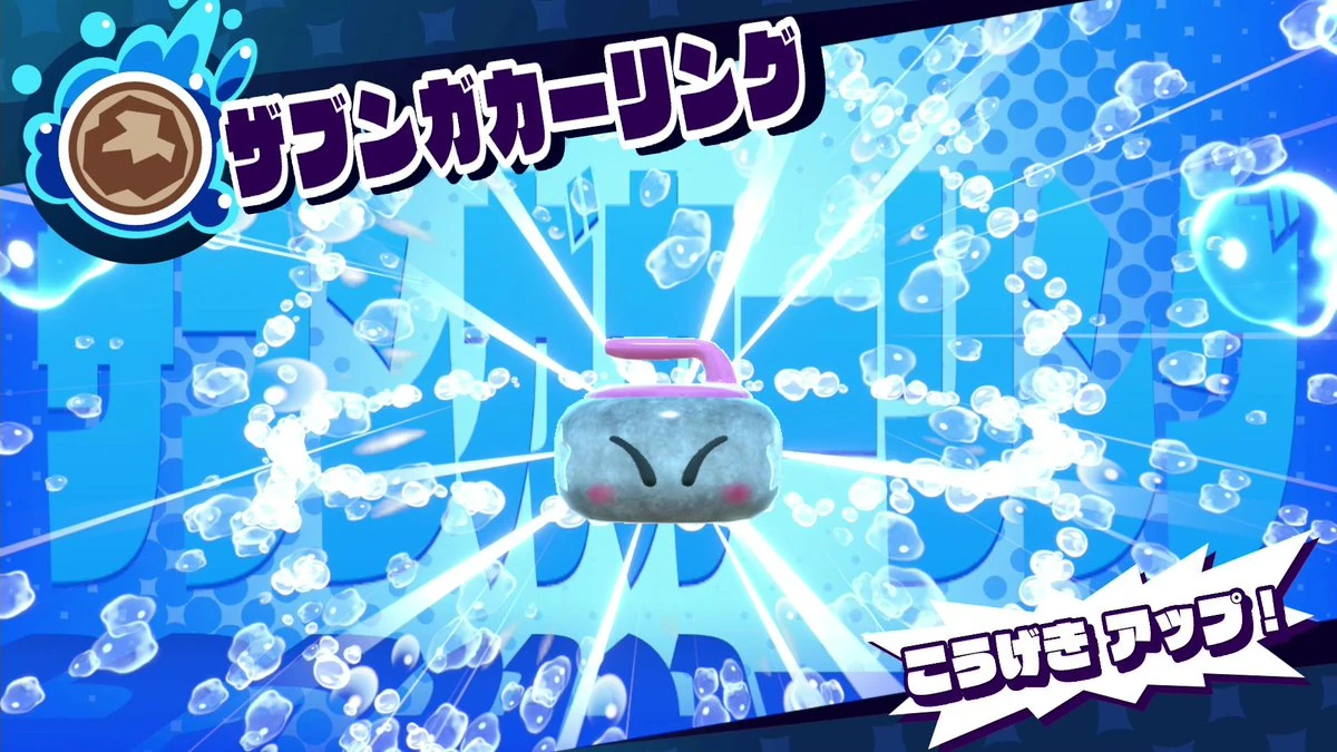 氷属性のカーリング。通り道に氷を残しながら突進する。水面を滑る時も氷を残しながら滑り、勢いが止まってもしばらく水面に留まることができる。