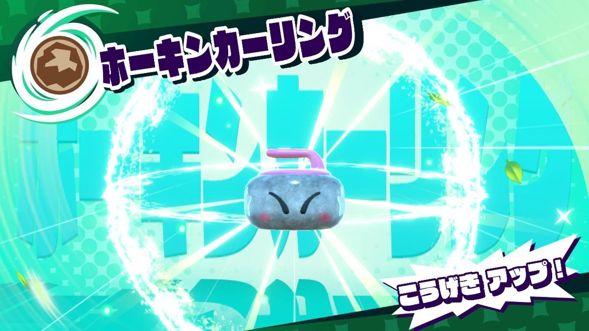 ストーン能力のキャラクター及び、リック、グーイが上を入力しているとき、または「石ころへんしん」などで石に変身している時に氷・水・クリーンの箒による風属性の技を当てると発動。対応した属性を纏い、『星のカービィ64』のアイスストーンの如くカーリングの石になって突進する。持ち手の部分の色はプレイヤーのカラーに応じて変化する。横向きのクイを打つことができ、すごくかたいブロックも破壊できる。どれも水面を滑ることが可能。カーリングの勢いが止まっても上記に示した3つのどれかを当てれば再び滑り出す。下り坂は通常よりも素早く滑る。「石ころへんしん」同様再度Bボタンを押せば解除でき、勢いが止まった後は「ズリズリまわる」ことも可能。