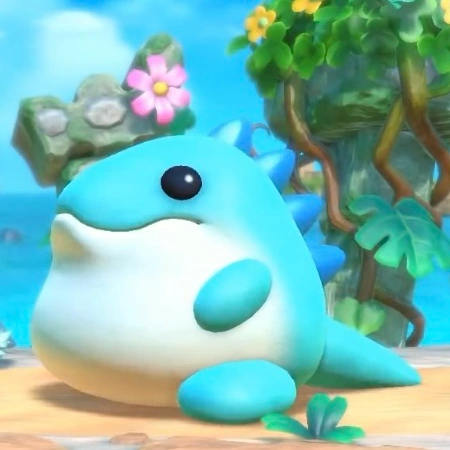 水色のぽっちゃりとした体で、しっぽは短く、円らな瞳をした恐竜のようなキャラクター。しっぽを回転させることにより空を飛ぶことができる。ゲームではパレットに描かれたイラストが実体化して出てくる事が多い。ダメージを受けると一瞬涙目になる。 アニメ版では魔獣として登場。