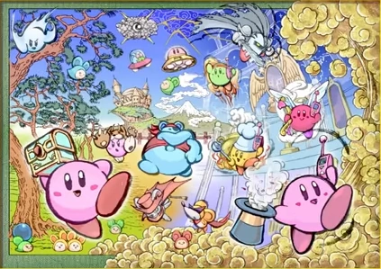 御宝争奪大迷宮 | 星のカービィ 鏡の大迷宮、星のカービィ 参上! ドロッチェ団 | 伊藤あしゅら紅丸 | 参ドロ「ドロッチェ団のテーマ」 | 各キャラは公式イラストに準拠している。鏡、参ドロ初登場の能力が多く描かれている。 |