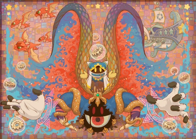 影なる共闘 | 星のカービィ 鏡の大迷宮、星のカービィ 参上! ドロッチェ団、星のカービィ スターアライズ | S.O | 参ドロ「ステージ:雷雲(仮)」、鏡「深海エリア」のメドレーアレンジ | ver3.0.0追加。暗黒ようさい ジャマハルダ!で初登場する敵が集まったジャマハルダ軍団が描かれている。 |