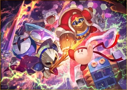 スーパーウルトラバトル! | 星のカービィSDX、星のカービィUSDX | lack | TDX「コロシアムの戦い」 | ファイターカービィが描かれているのは格闘王への道を意識か。『USDX』の公式イラストを参考にしたのかギャラクティックナイトの体色が青くなっている。 |