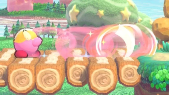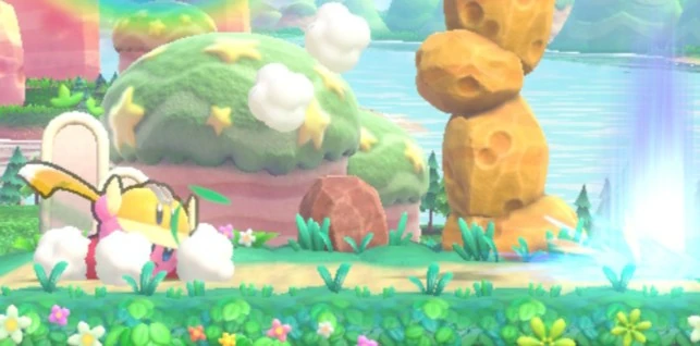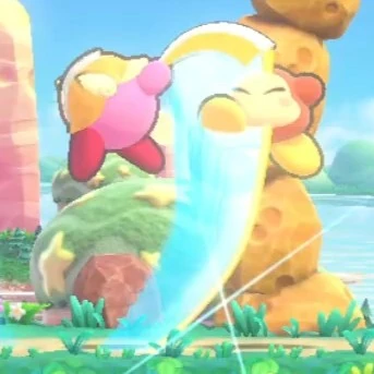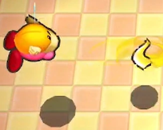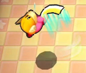 - 飛ばす方向を上下に調節できる。キャロットキャッスル、ラディッシュルインズに登場するシャドーカービィも使用する。