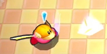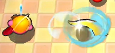 - 酔ったカービィが宴会芸として発動した「コピー技十連発」の1つ。デデデ大王にカッターを投げつけた。