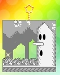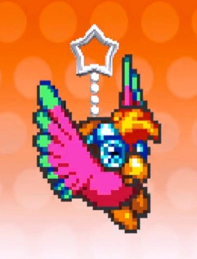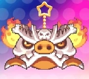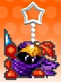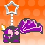 マホロア | 星のカービィ Wii | ロイヤル ロード・ステージ7 中盤のグルグルウォールの2つ目の火炎ブロックの塊の中 すれちがいパネル及び海外版『スペコレ』に使用されたドット絵。 『デデデンZ』「CROWNED」うらで背景に登場。 |