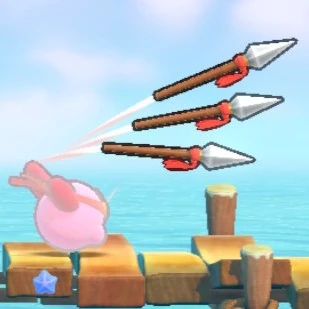 また、同じく『Wii』で初登場したバンダナワドルディのアクションは、スピアをコピーしたカービィとほぼ同じである。『スターアライズ』以降はスピアの登場こそないものの、バンダナワドルディで実質的に同じ操作が可能。