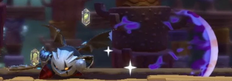 - オープニングでカービィを4つに分け、「ディメンションミラー」にメタナイトを封じ込め、更に8つに割ってしまう。