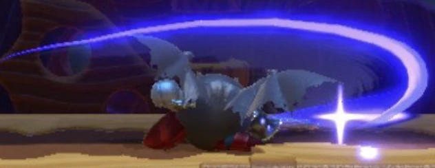- ディメンションミラーにて使用。剣を地面に突き立てて竜巻を放つ。メタナイトの竜巻斬りとほぼ同じである。波動斬りと構えるモーションは同じだが構えている最中にダークメタナイトが振動するので見分けがつく。