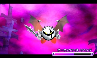 ダークメタナイト リベンジは、『星のカービィ トリプルデラックス』のモード、「デデデでゴー!」のラスボスとして登場。