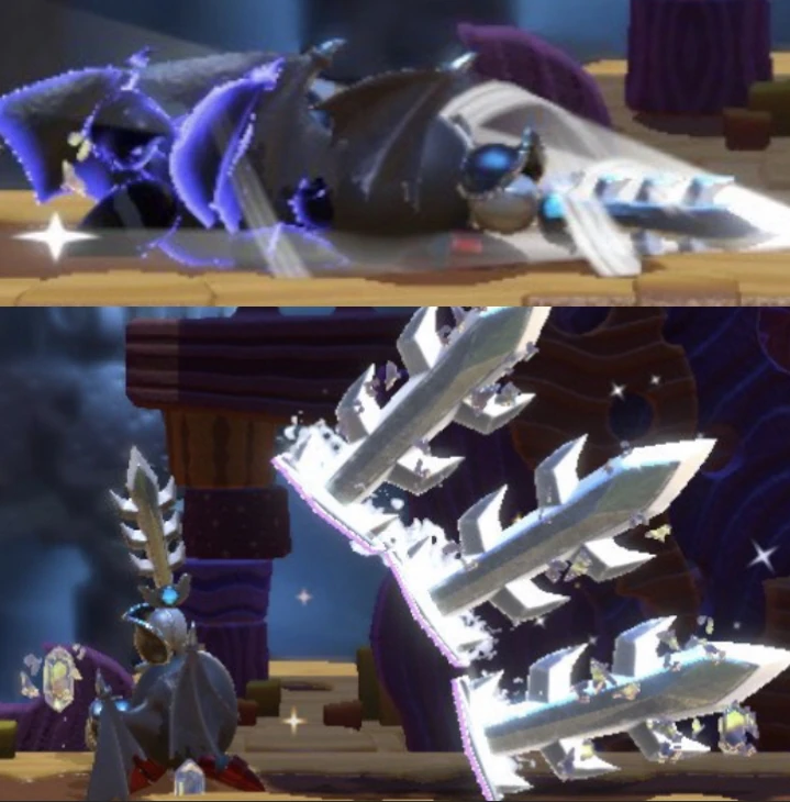 - 狙いは謎だがカービィを一撃で4人に分裂させたり、メタナイトを一騎打ちで倒しているのだ!