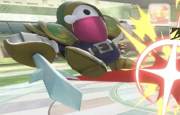 - 『カービィのエアライド』のソードナイトのようにボードに乗っている。本作では金属の籠手を装着している。