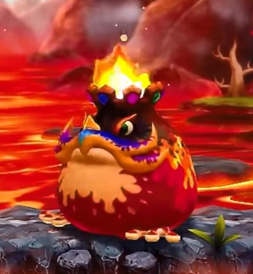 巨大な赤色のカエルのような姿をしており、頭には火のともった冠をかぶっているほか、口元にはひげの様なものが見受けられる。体は大きいが動きは非常に素早く、フィールド上とマグマの海を忙しく行ったり来たりしてプレイヤーを翻弄する。体力が半分を切るとステージ後方に火山と4つの浮遊石を出現させ、マグマモンスターや火山弾を使ってより強力で範囲の広い攻撃を行うようになる。
