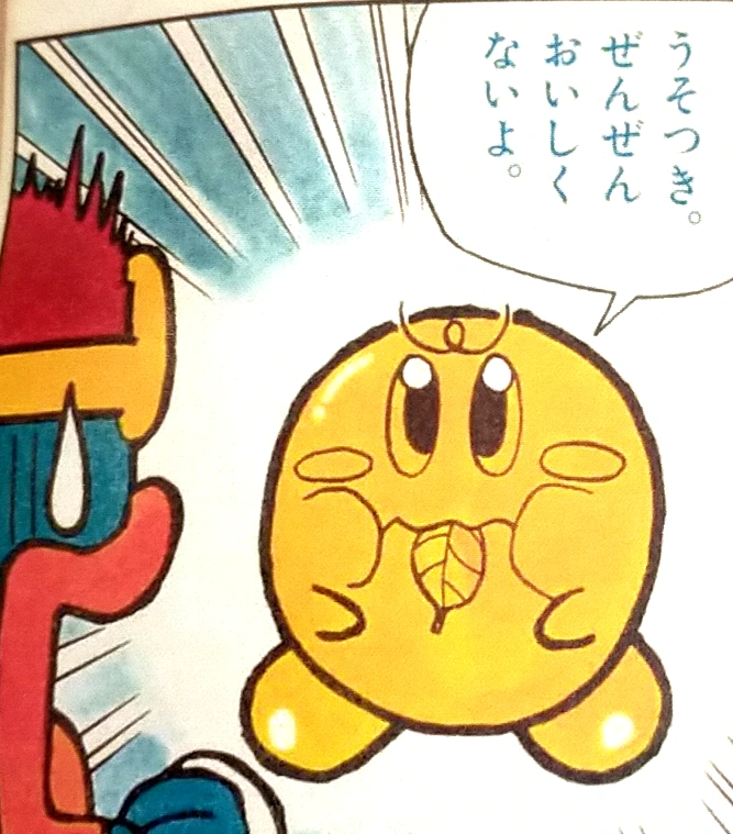 星のカービィ (前田のえみ) 1994年度12月号? | 黄色いはっぱをすいこんで全身が黄色くなった姿。 |