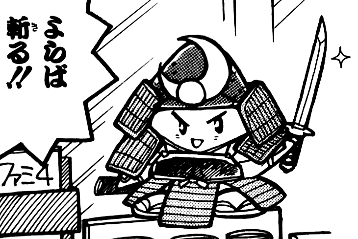 星のカービィ 4コマまんが王国 1 カービィ コピっちゃう♡ | 中村里美作。コンビニらしき施設でコピー機になりきっていたカービィが、人間の男性から渡された日本史のノートをすいこんでコピー。 後にゲームではニンジャ能力のきせかえやレアぼうしとして「サムライかぶと」が登場している。 |