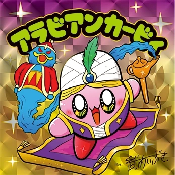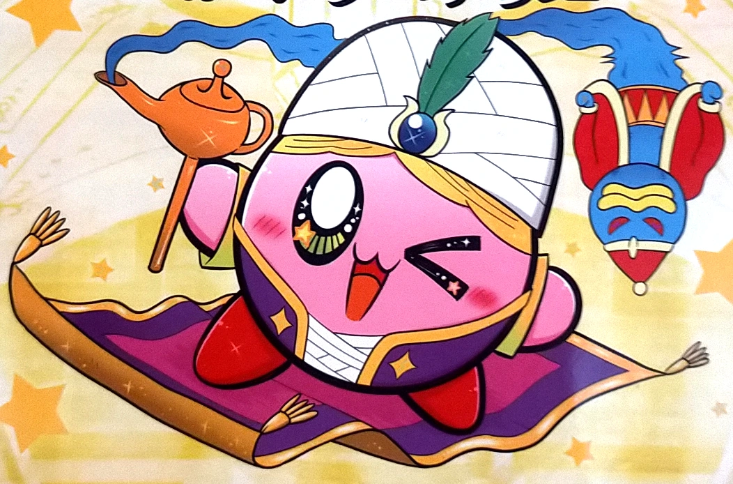 星のカービィ 〜まんぷくプププファンタジー〜 8巻 表紙、第88話 | カービィイラストコンテスト最優秀賞コピー。第88話はこの能力をメインにした回である。先端がランプの形状をしたステッキで好きな形の魔人を出すことができる他、まほうのじゅうたんで空も飛べる。ステッキは他の人が使うこともできる。 |