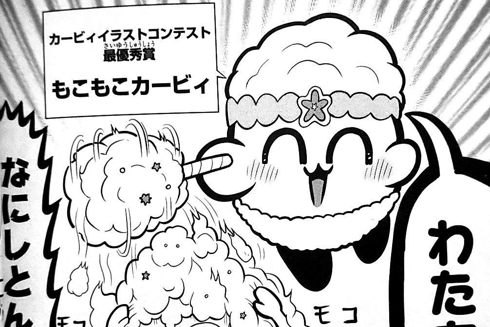 星のカービィ 〜まんぷくプププファンタジー〜 7巻 第76話 | コロコロコミックで企画された「カービィイラストコンテスト」最優秀賞コピー。銭湯で頭を洗おうとしたデデデ大王をわたあめまみれにした。 |
