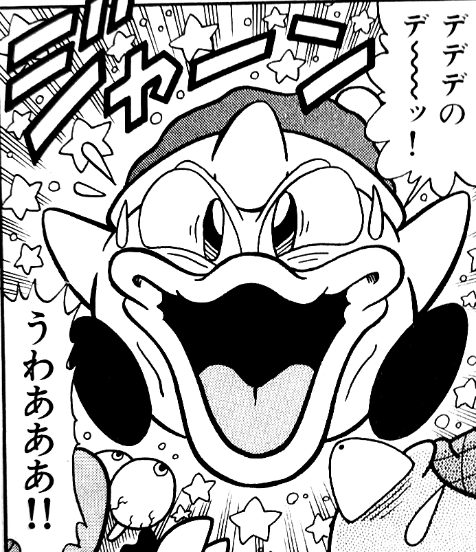星のカービィ (さくま良子) プププゲームランド | 同上、カービィがデデデ大王をすいこんで変身した姿。 ゲームでも後に『スマブラX』でデデデをコピーできる。 |