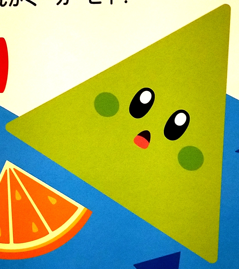 星のカービィ まるさんかくプププ | 緑色のカービィが「さんかく」をすいこんで正三角形状に変身した姿。「つん つん つん!」と尖る。 三角に変形する能力としてはゲーム作品にはさんかくほおばりがある(あちらは円柱に近い)。 |