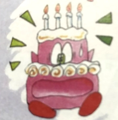 星のカービィ 〜まんぷくプププファンタジー〜 10巻 第112話 | 様々なものに次々をほおばりヘンケイしてしまうカービィが、最終的にデデデ大王をほおばってしまった姿。3日後、無事元に戻ったらしい。 「※ゲームにはこんなほおばりヘンケイはありません。」と注釈を入れられている。 |