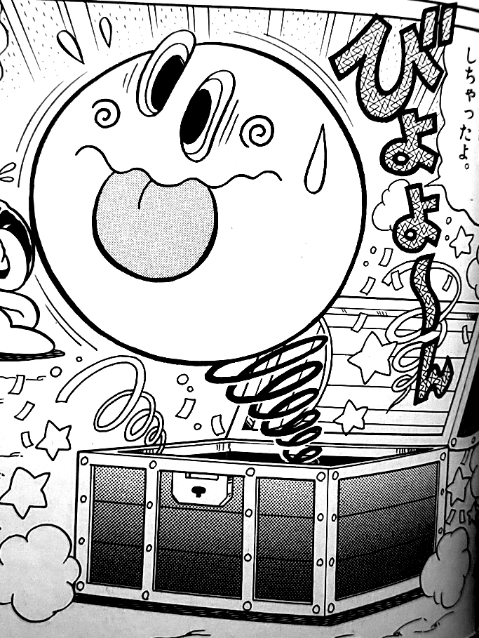 星のカービィ デデデでプププなものがたり 1巻 第7話 | 宝箱をすいこんでコピーした姿。これにより宝箱の中身がびっくり箱と判明した。 |