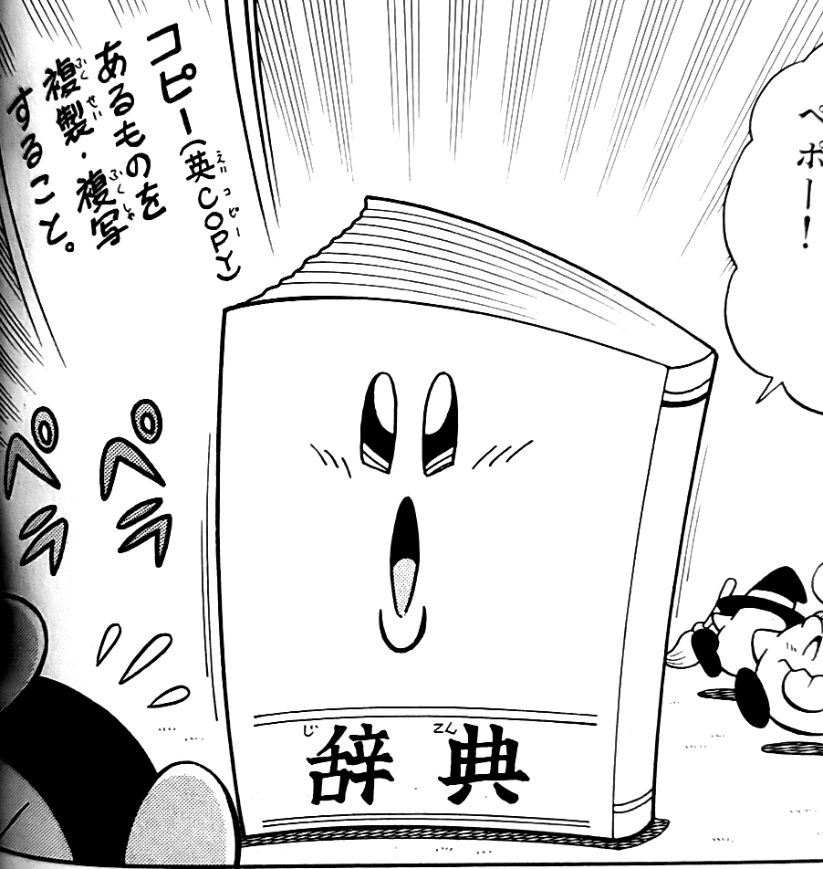 星のカービィ デデデでプププなものがたり 2巻 第5話 | 辞典を食べてコピーした姿。収録内容を暗唱できる。自分で本の体を開くこともできる模様。 |