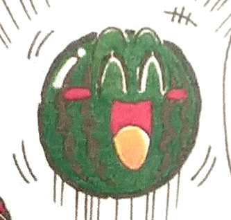 星のカービィ〜ゆるっとプププ〜 よちよち編 第5話 | スイカを食べ過ぎたカービィが変身していた姿。種を何粒も吐き出して砂浜に「おいしかった」と文字を書いた。 |
