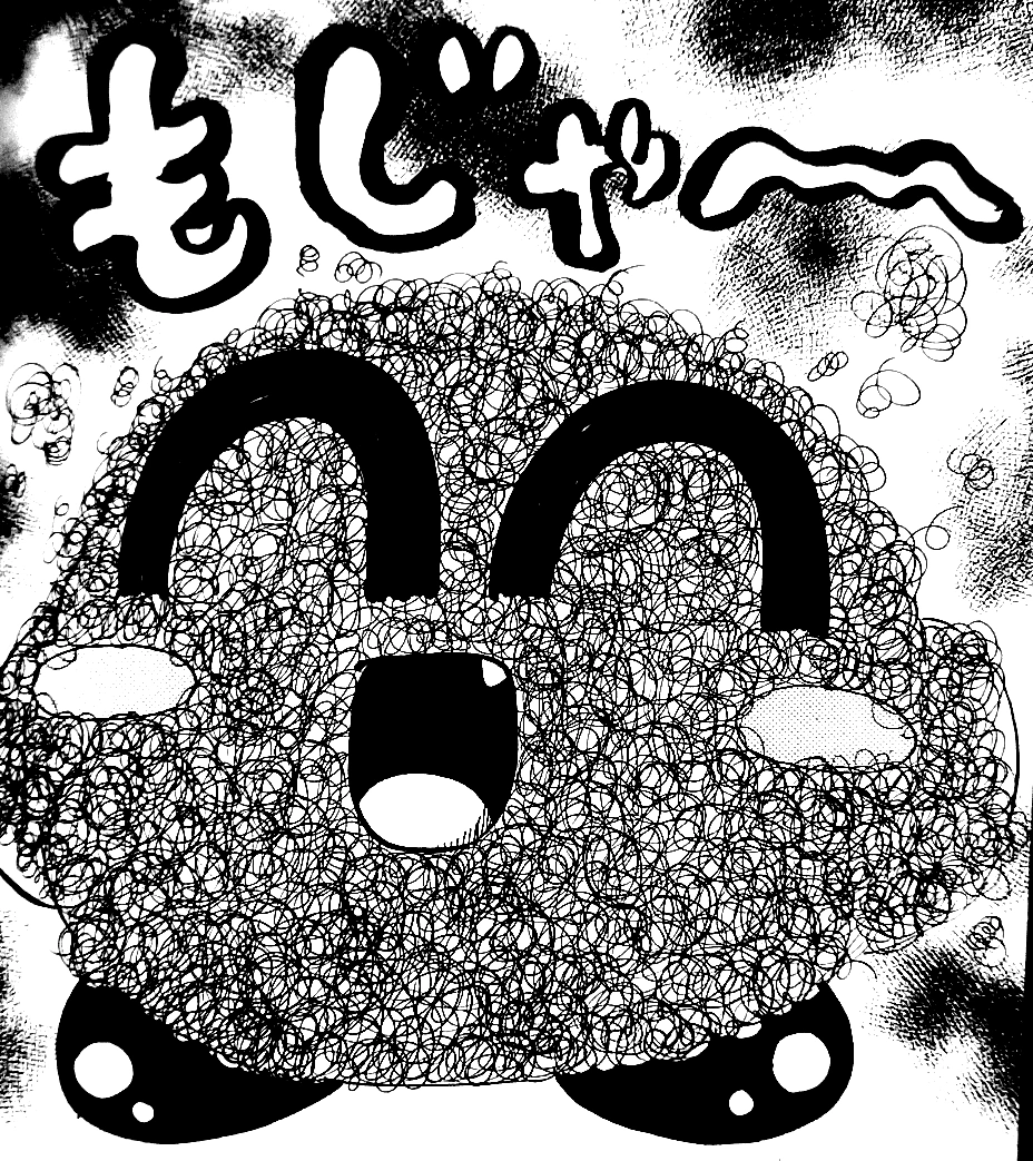 星のカービィ! も〜れつプププアワー! 5巻 第8話 | カービィの家を乗っ取っていた埃のオリジナルキャラ「もじゃもじゃ」をすいこんで除去したものの、コピーしてしまい本人が埃まみれになってしまった。 |