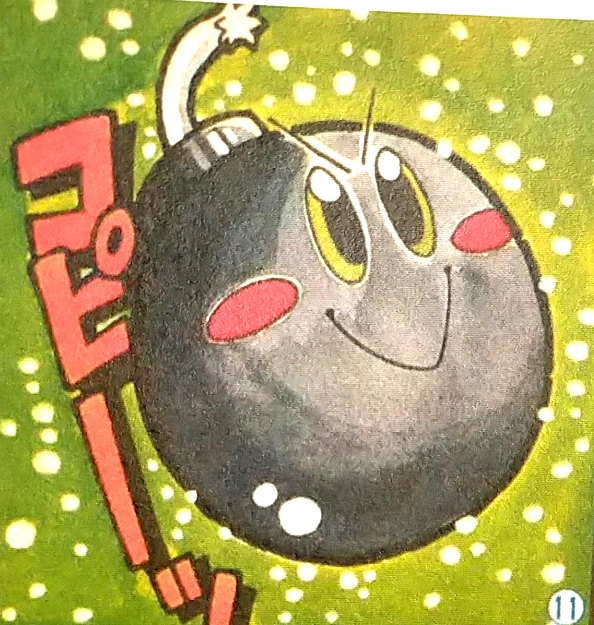 星のカービィ (前田のえみ) 1994年度9月号? | 爆弾のような見た目の花火玉をすいこんでコピーした姿。自分で爆発してデデデ大王たちを巻き込み空へ打ち上がった。 ゲームでも後に『カービィ64』で自身が花火になるバーニングボムが登場。 |