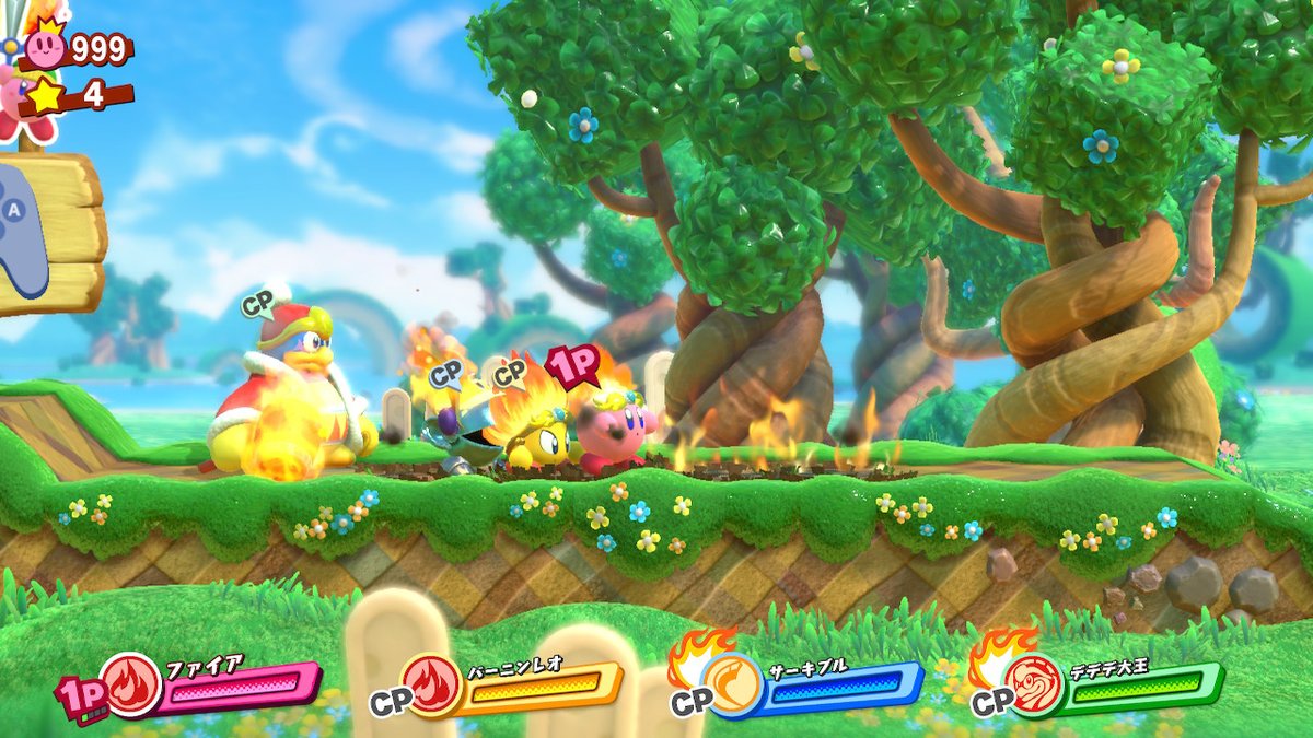 残機はゲームを終了しても保存されるようになった。残機を最大値である999にすると、残機表示のカービィのマークが王冠を被る。