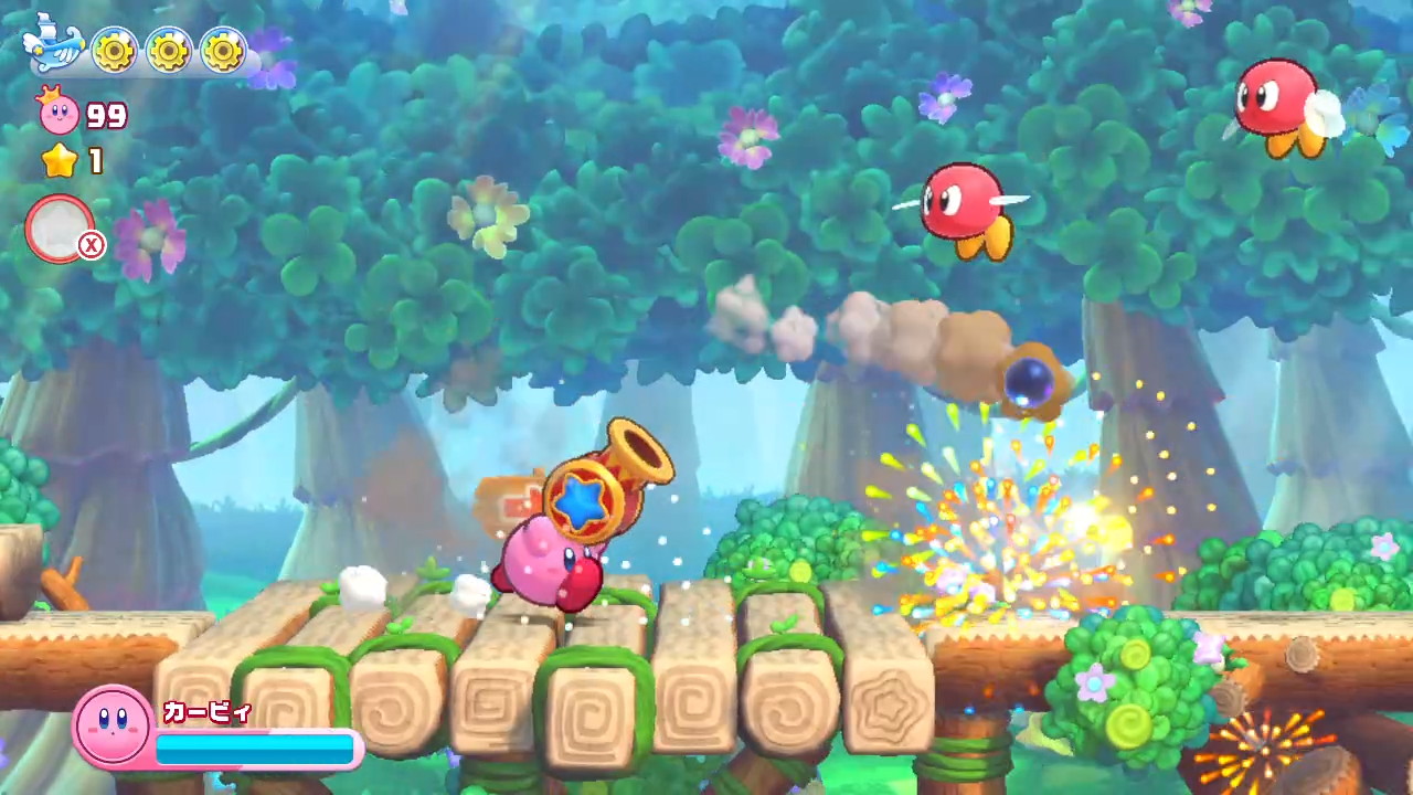 - ポピーブラザーズランド中段のまんぷくカービィには、スクイッシーとマキシムトマト(ストッパー)の間に1UPアイテムを出すタイミングがある。