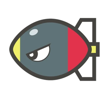 Bang-Bang resembles a gray missile. He has yellow feet (seen only in Kirby & The Amazing Mirror), a yellow coloration at the tip of his front and a red hue at his other end.