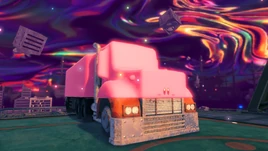 After freeing Elfilin from Fecto Elfilis, the now disintegrating Fecto Elfilis manages to send Planet Popstar on a direct collision course with the Forgotten Land, sending buildings and objects from the latter into the air. This causes a big-rig truck to land directly next to Kirby and Elfilin.