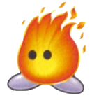 Boboo is a walking flame with black, beady eyes and blueish feet, but whenever it is defeated or bumps into a wall, it reveals that it is actually a giant piece of crimson coal.