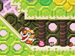 Corn Hall is the second level in Gourmet Race, a sub-game in Kirby Super Star and its remake. It proceeds Pumpkin Grand and precedes Onion Garden. It is much longer than Pumpkin Grand, and as Corn Hall has more hills and cliffs, it is also generally harder than Pumpkin Grand.