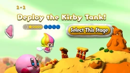 Deploy the Kirby Tank! is the sixth stage in Kirby and the Rainbow Curse. It is the second stage of Yellow Dunes. It succeeds Dig and Dash and precedes The Long-Lost Ruins.