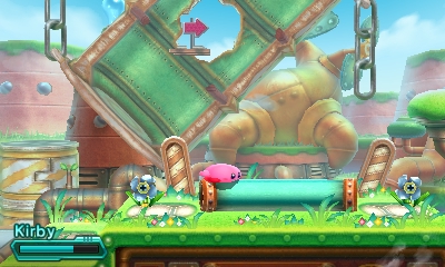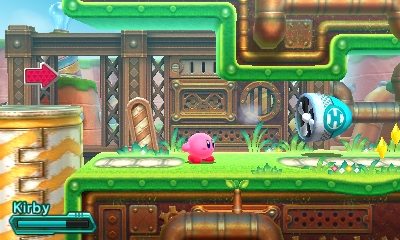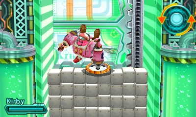 Screws appear throughout Kirby: Planet Robobot and can only be removed using Robobot Armor. After the player approaches one and presses ↑, he/she must rapidly rotate the Circle Pad counterclockwise to unscrew it. Removing a screw from an object generally causes the object to break down; Kirby even defeats two mid-bosses this way.