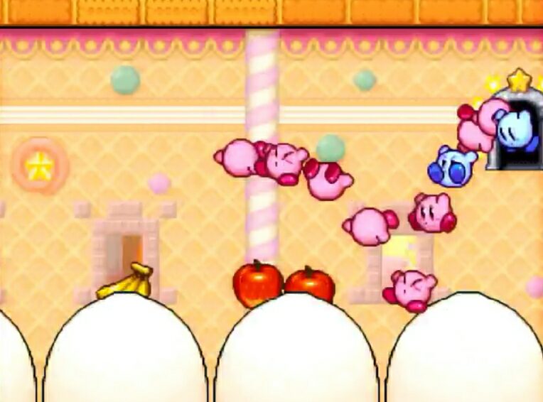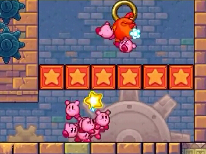 In Kirby Super Star and Kirby Super Star Ultra, there are more of the kind of switches found in Kirby's Adventure. Much smaller switches open mechanical doors that block Kirby's path - these only remain depressed and keep the associated doors open for a certain time, so Kirby must move quickly and have the appropriate Copy Ability prepared to solve the switch sequence.
