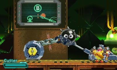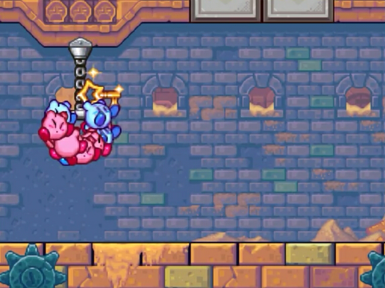 Giant chains appear across Planet Popstar, often holding up heavy platforms. Using the Sword or Cutter Modes, Kirby's Robobot Armor can cut them.