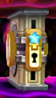 Starting with Kirby's Return to Dream Land, a special type of shutter that requires a Key to open up appears, they are beige with a lock that has a blue star over it. Kirby Star Allies has some with stars color coded as blue or red, unlocked with the corresponding colored keys.