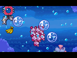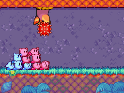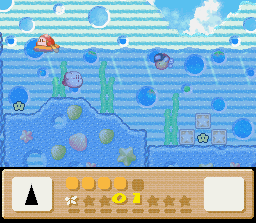 In certain situations, however, currents are just gentle enough for Kirby to swim against it, albeit at greatly-reduced speed. These are especially common in Kirby's Epic Yarn, made easier still from the fact that Dolphin's surge attack can go against any current (with only the exception of an especially strong current).